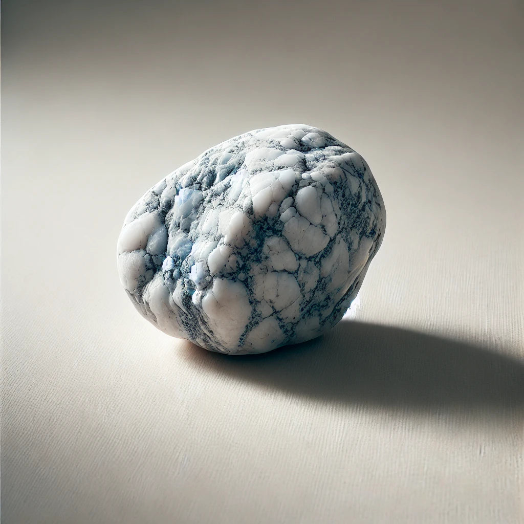 Howlith ist ein vielseitiger Stein, der ursprünglich in Kanada entdeckt wurde und durch seine schlichte Eleganz begeistert. Mit seiner weißen Farbe und den markanten grauen oder schwarzen Adern lässt er sich mühelos in moderne wie auch klassische Stile integrieren.
